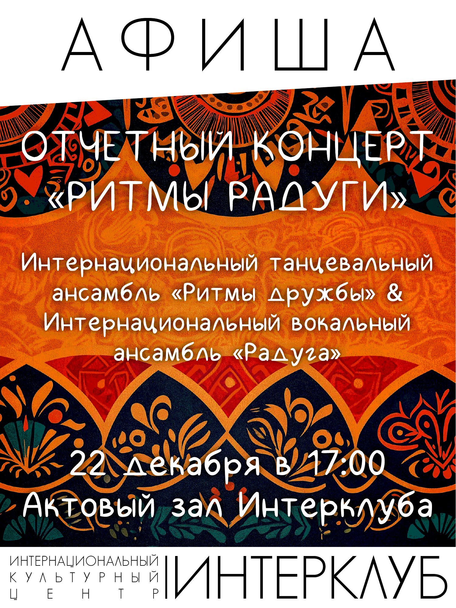 22 декабря состоится отчетный концерт студий "Ритмы дружбы" и "Радуга"!